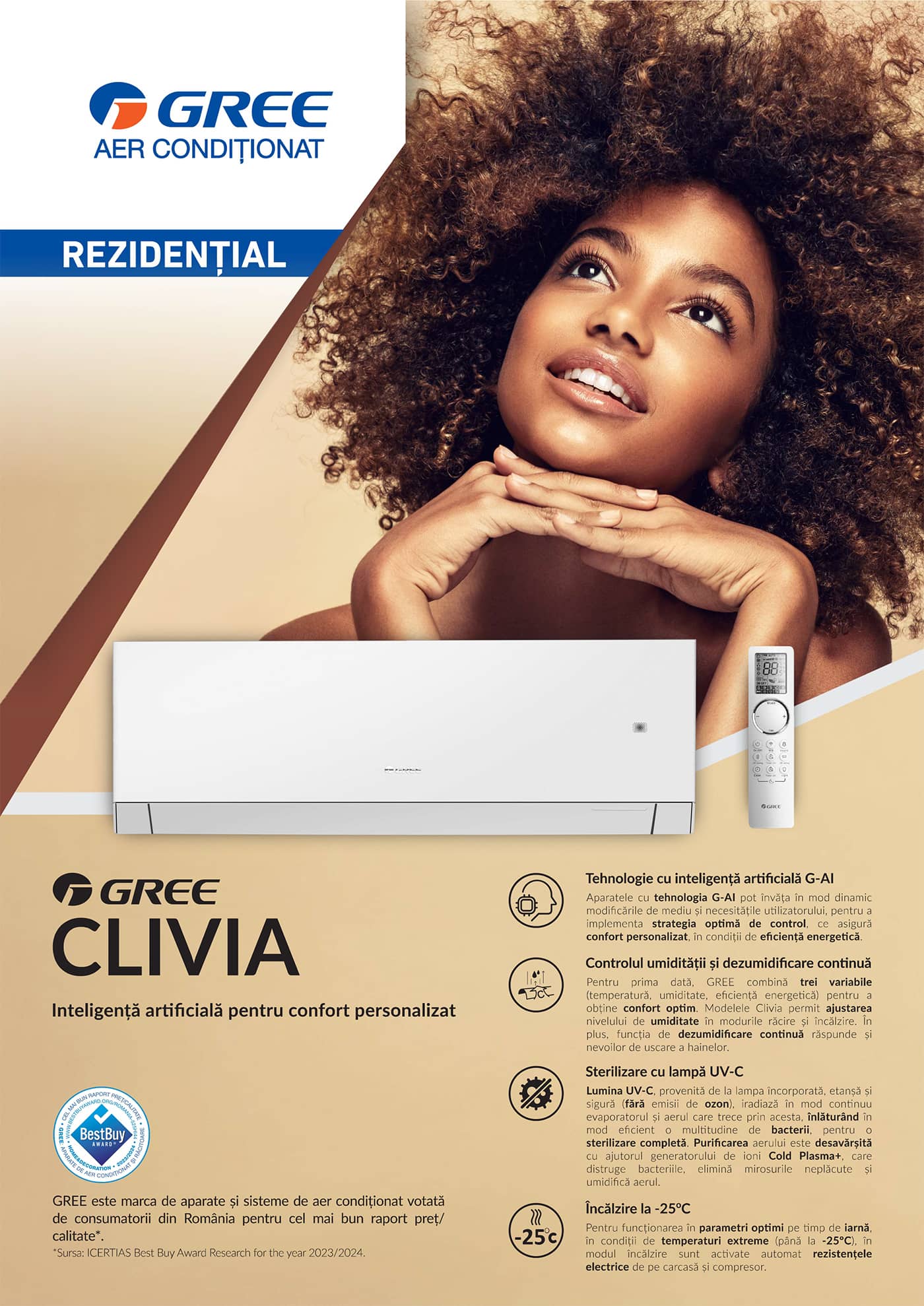 Aparat de aer conditionat GREE Clivia 9000 btu - GWH09AUCXB-K6DNA1A, Wi-Fi Control Integrat, Clasa A+++