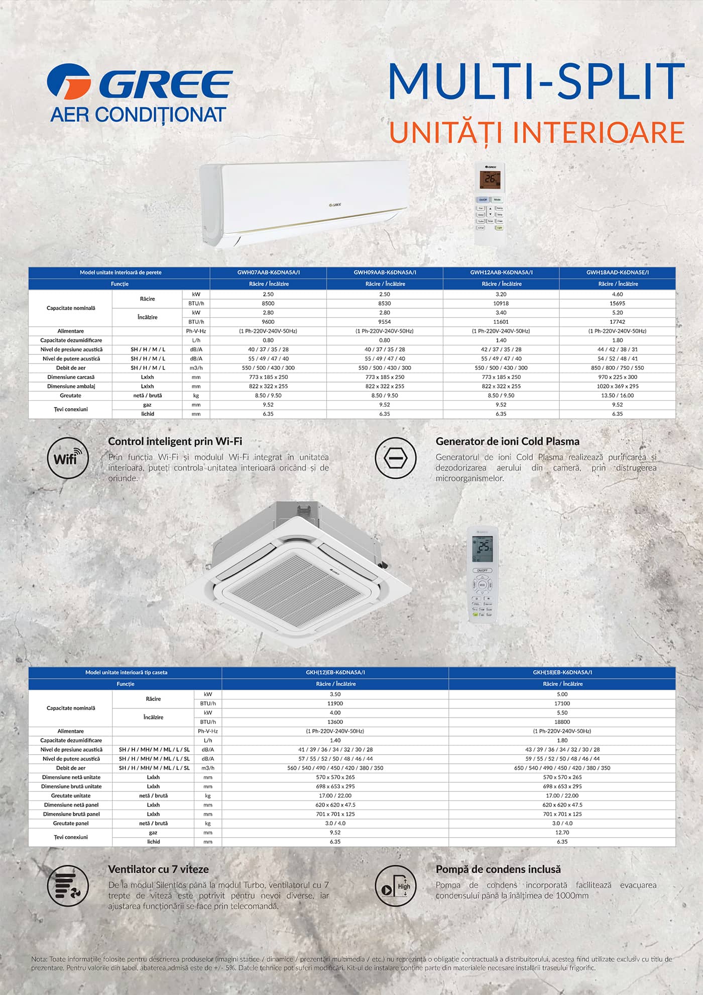 | Functii | Control WiFi, Autodiagnoza, Autorestart, Dezghetare Inteligenta, Timer, I Feel, Turbo, Sleep, Afisaj ceas, |